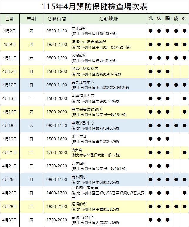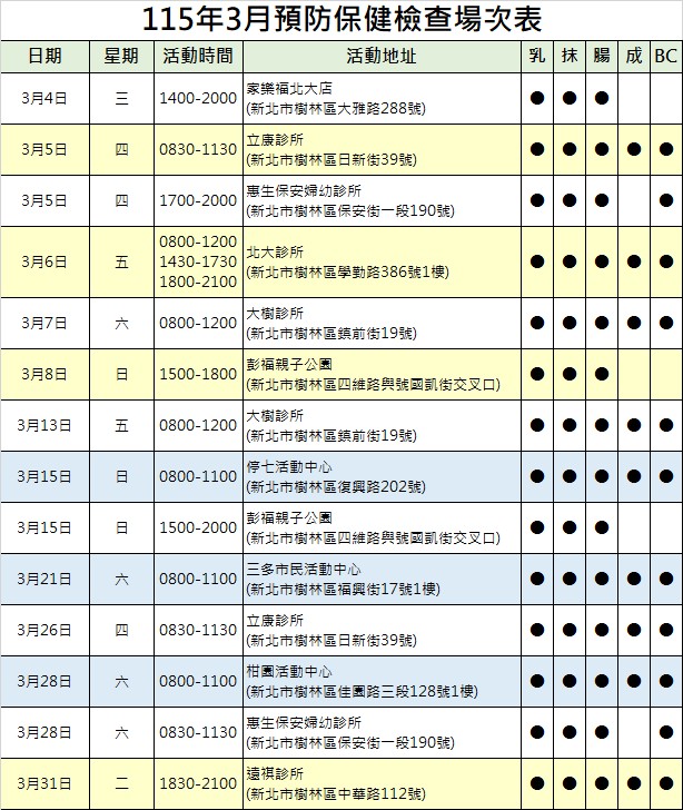 如當天停診無法檢查,將公佈於樹林衛生所官網(焦點消息區)